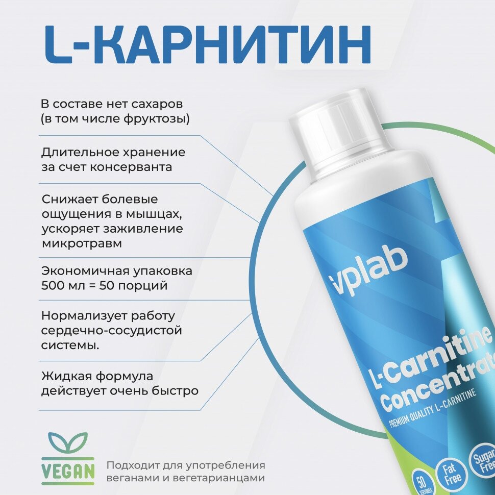 VPLAB L-Carnitine Concentrate 500 мл, тропические фрукты, L карнитин питьевой концентрат