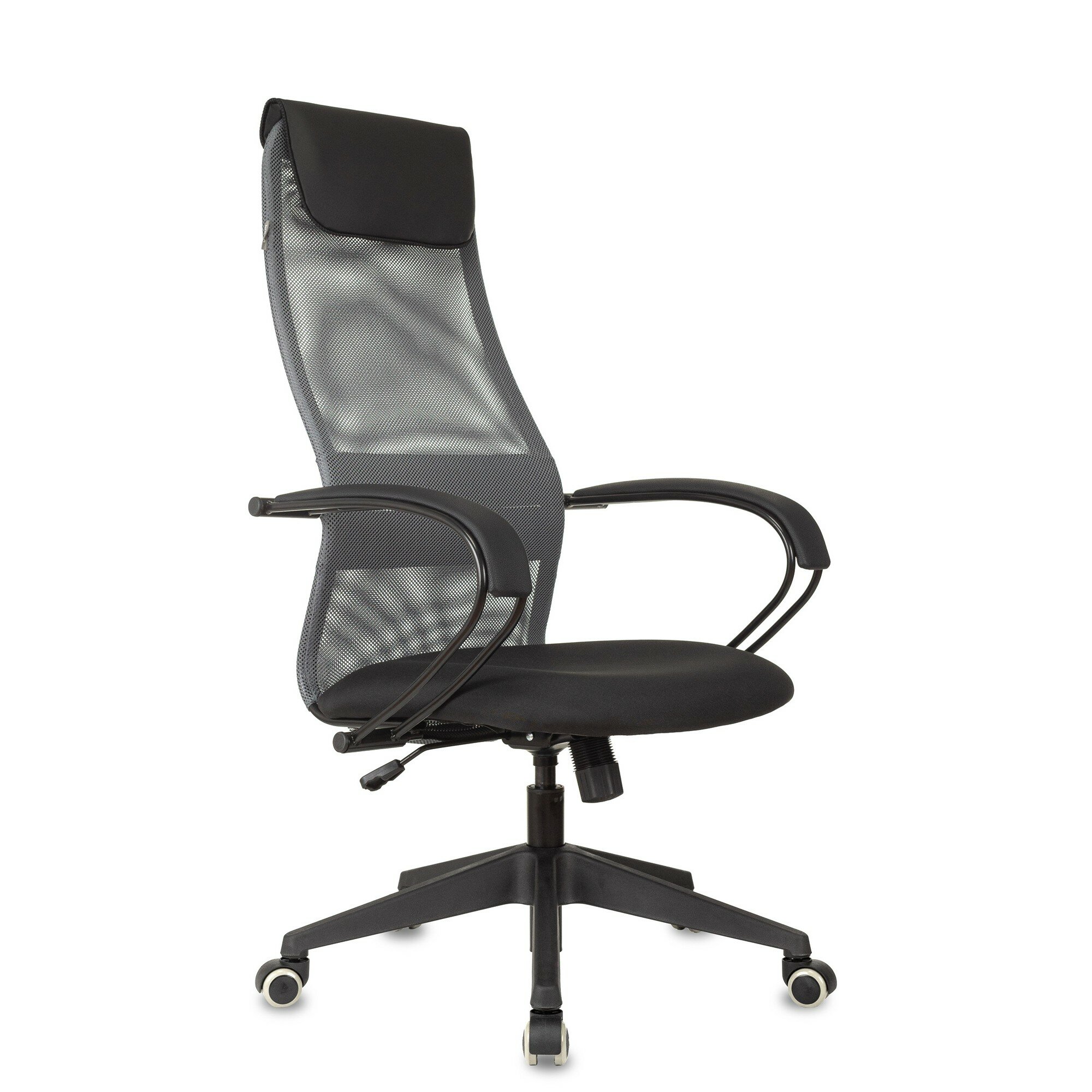 Кресло руководителя Бюрократ CH-607/LGREY черный/серый, сетка/ткань, с подголовником, крестовина пластик
