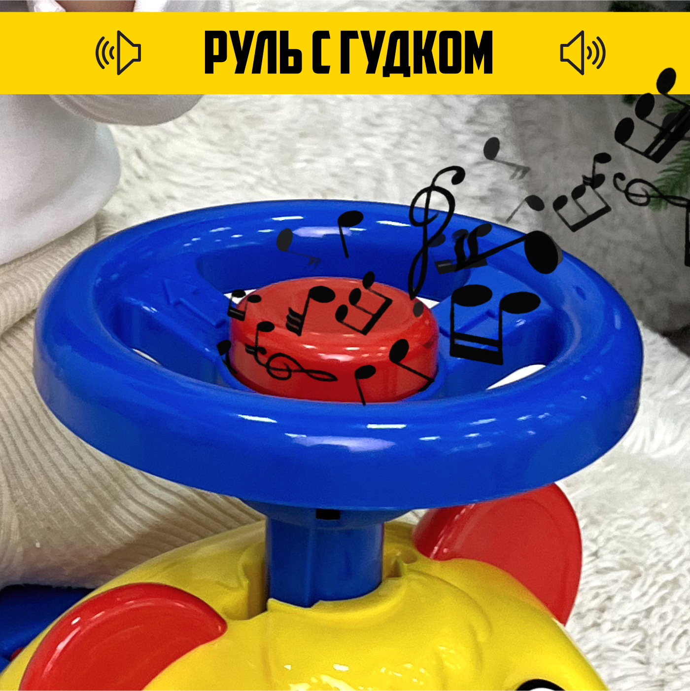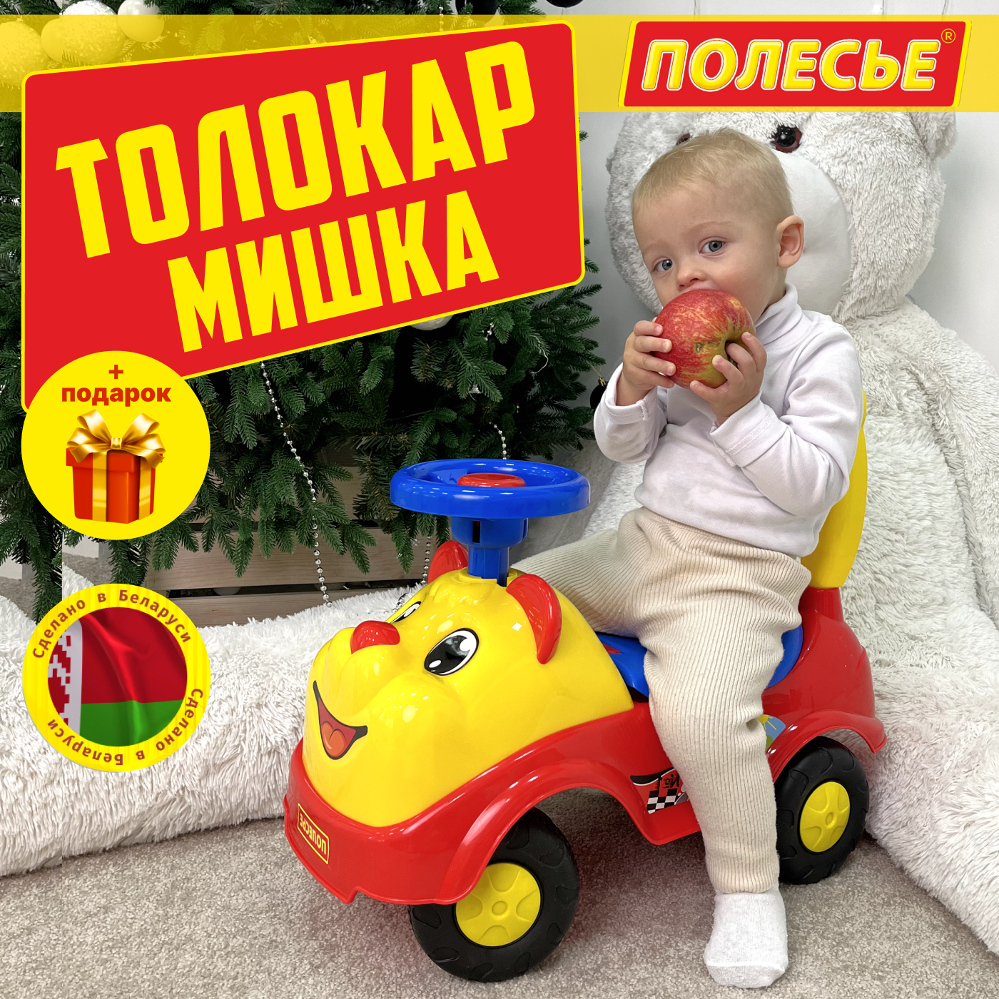 Bambi Автомобиль-каталка Полесье Мишка (77974), желтый/синий/красный каталка (толокар) в Курчатов