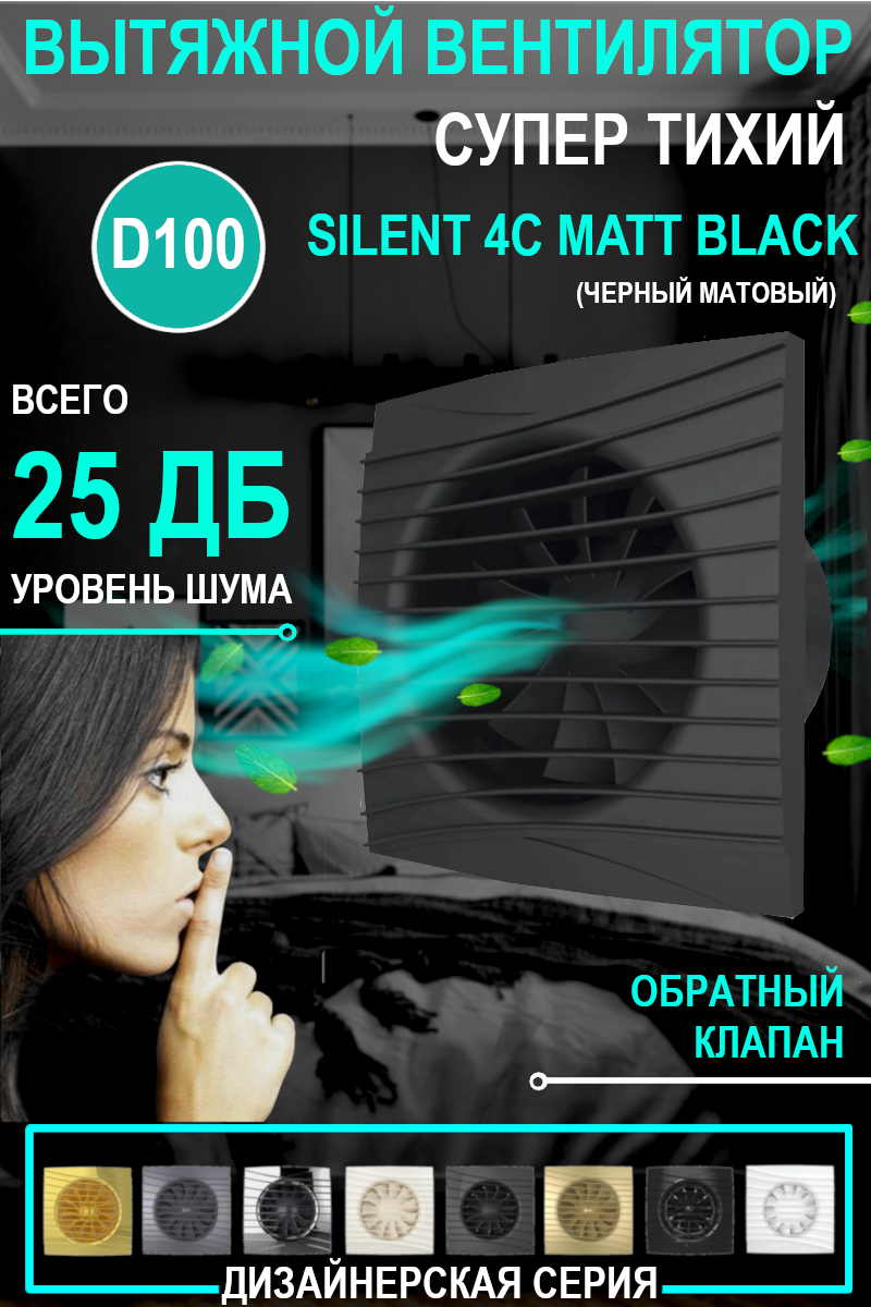 Вентилятор осевой вытяжной DiCiTi Silent 4C Matt black, с обратным клапаном, D 100, 8,4 Вт