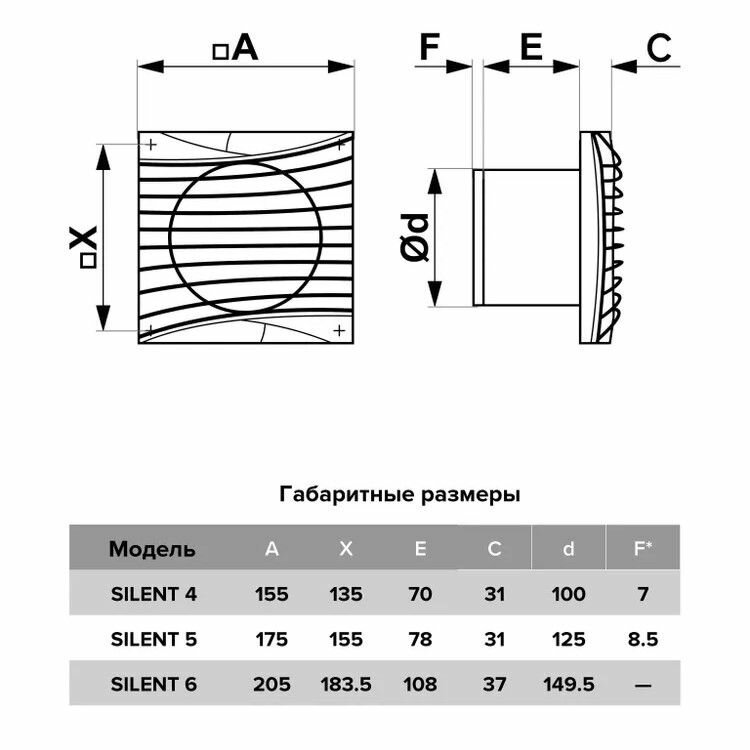 Вытяжной вентилятор Diciti SILENT 4C, 155х155 мм, D100 мм, с обр. клапаном, в ванную, белый