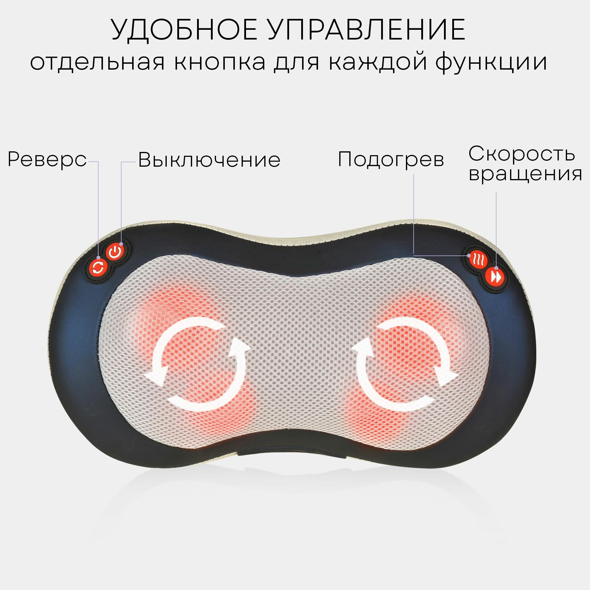 PLANTA Многофункциональная массажная подушка для дома и для автомобиля MP-020 (4 функции), подушка с подогревом, реверс роликов