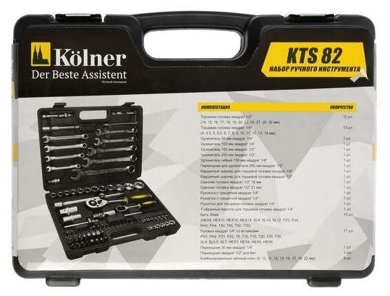 Набор инструментов KOLNER KTS 82 предмета, пластиковый кейс