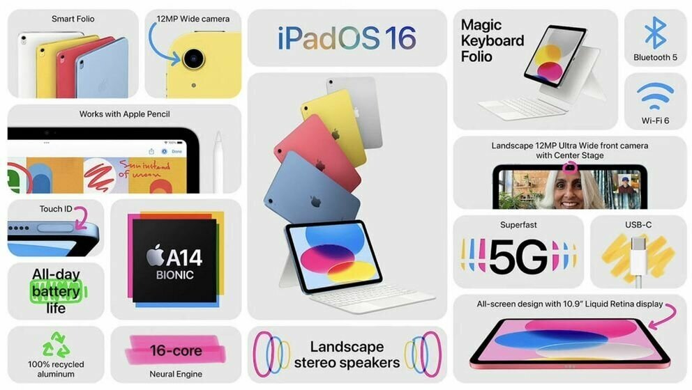 Apple Планшет Apple iPad 10 2022 4/256 ГБ Wi-Fi Yellow, желтый планшет в Курчатов