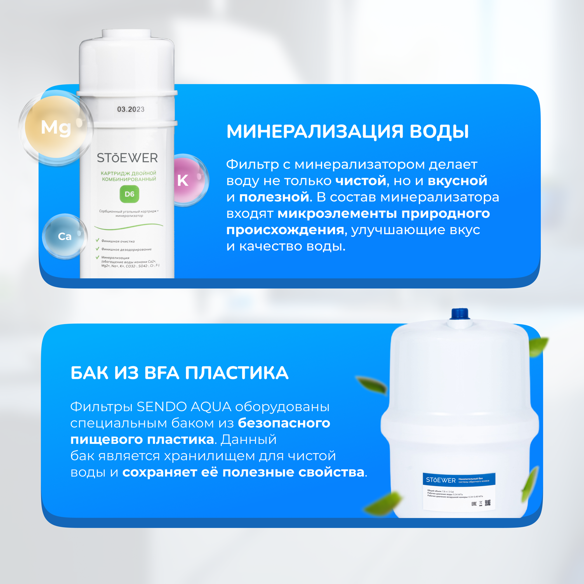 Фильтр обратного осмоса Sendo by Stoewer A12 + набор сменных картриджей K3+К4 (7 шт.)