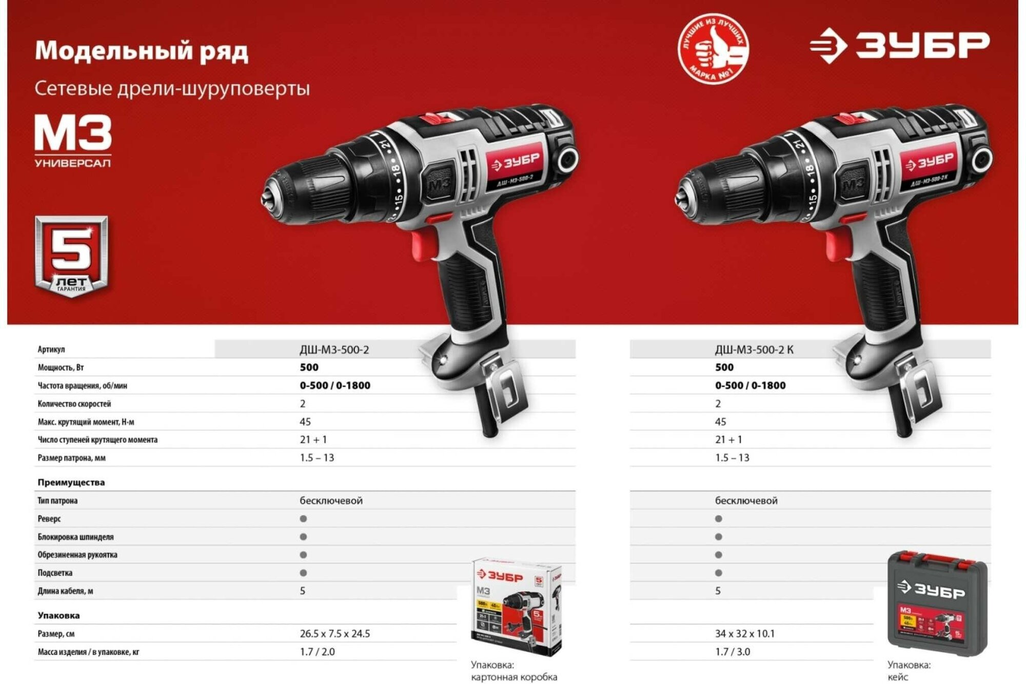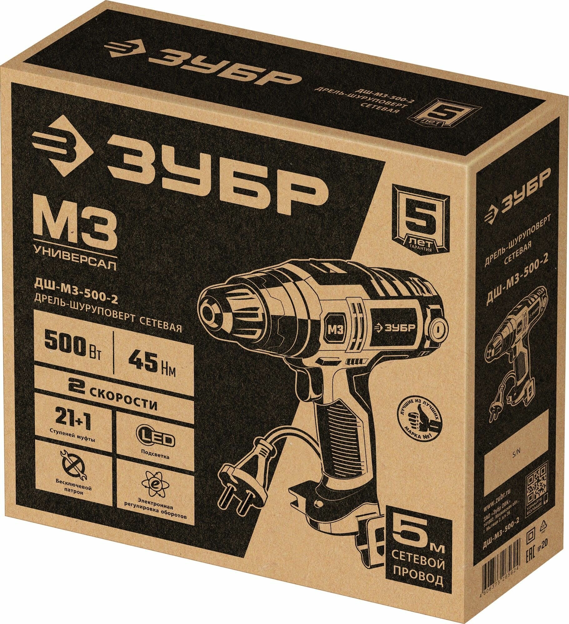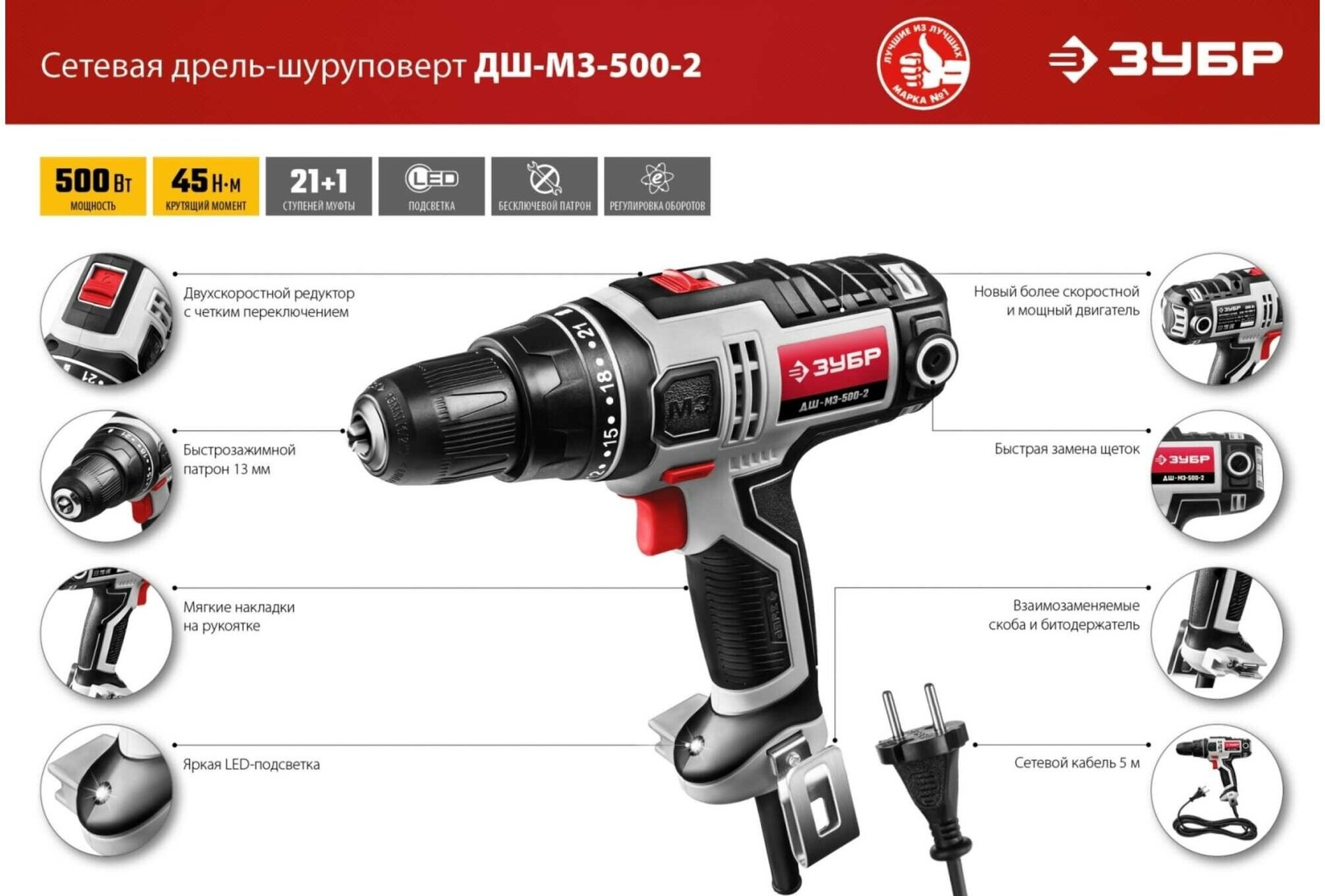 Сетевая двухскоростная дрель-шуруповёрт Зубр ДШ-М3-500-2