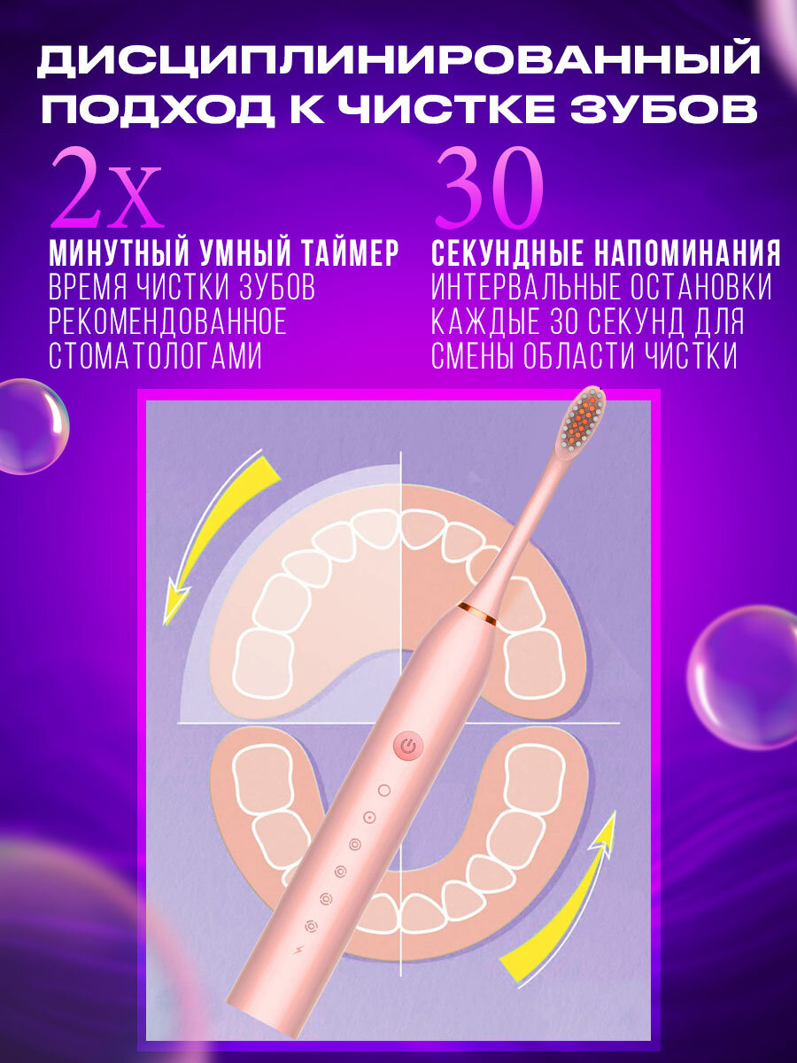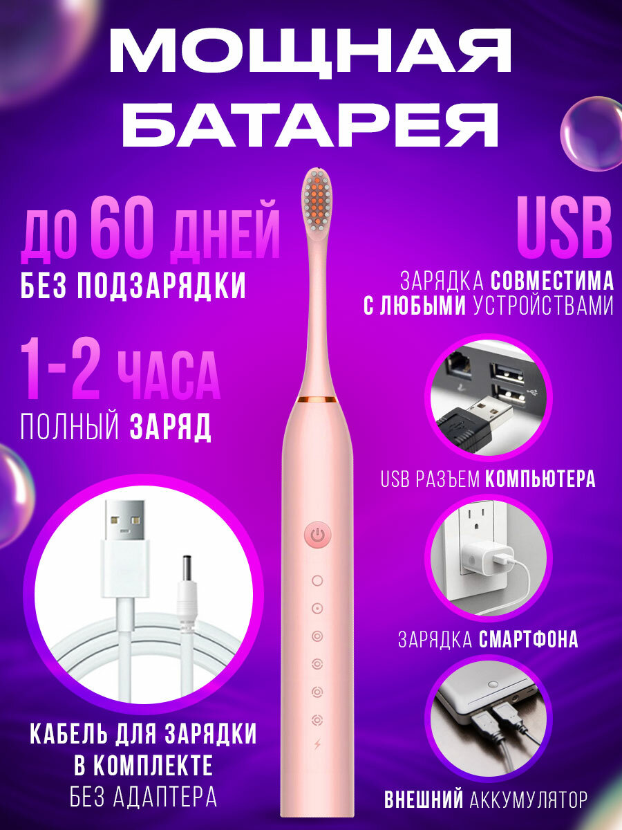 Электрическая зубная щетка SONIC TOOTHBRUSH X-3 / розовая щётка / зубная щётка