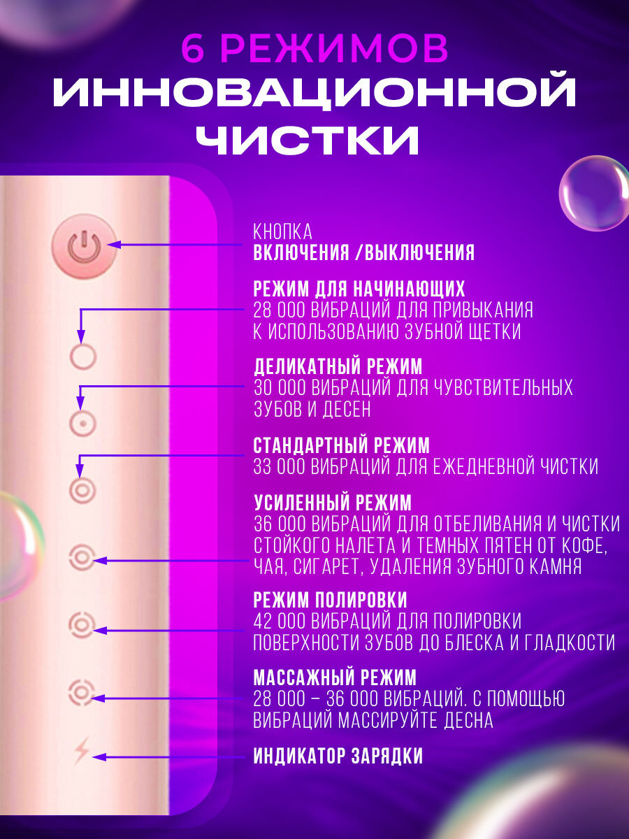 Электрическая зубная щетка Sonic X-3 / средней степени жесткости для взрослых и подростков / Для всех видов зубных паст 6 режимов работы
