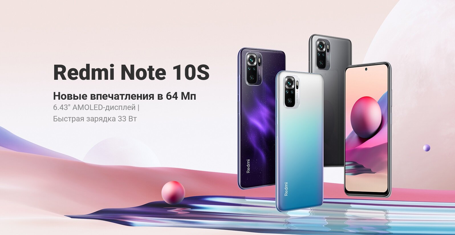 Смартфон Xiaomi Redmi Note 10S, 6/128ГБ, global, Xiaomi, Redmi Note 10S, Смартфон, Голубой, 6ГБ, 128ГБ, global, новый, 01.01.2021