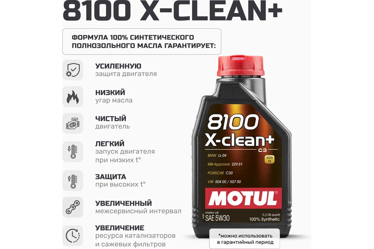 MOTUL 106376 MOTUL 5W30 8100 X-clean + (1L)_масло мотор.! синт.\ACEA C3, VW 507.00/504.00, Porsche C30, MB 229.51 1шт
