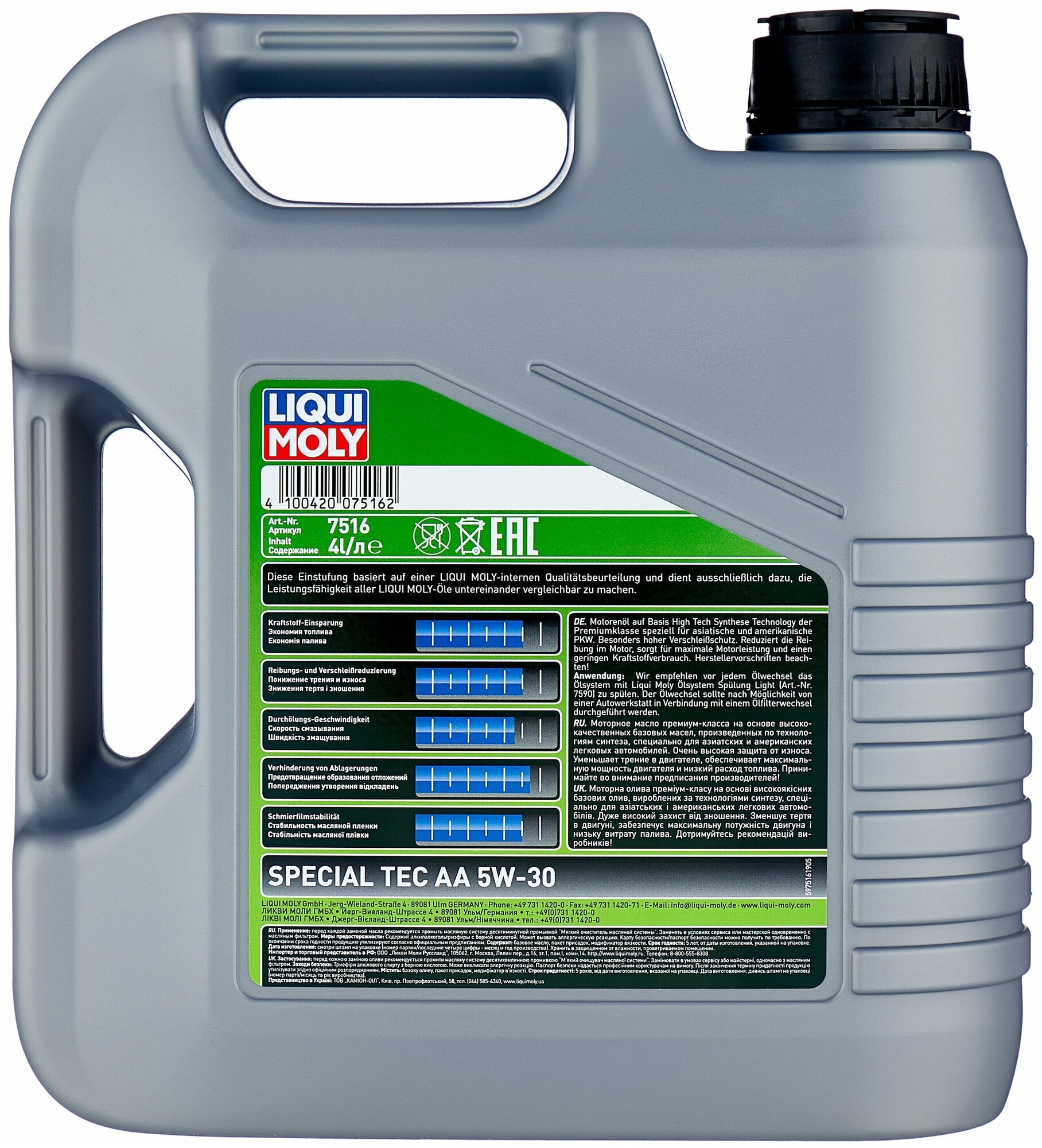 LIQUI MOLY 7516 Масло моторное Special Tec AA (Leichtlauf Special AA) 5W-30 4L 1шт