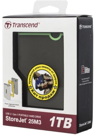 Внешний жесткий диск 2.5'' Transcend TS1TSJ25M3S 1TB StoreJet 25M3S USB 3.0 черный с зеленым