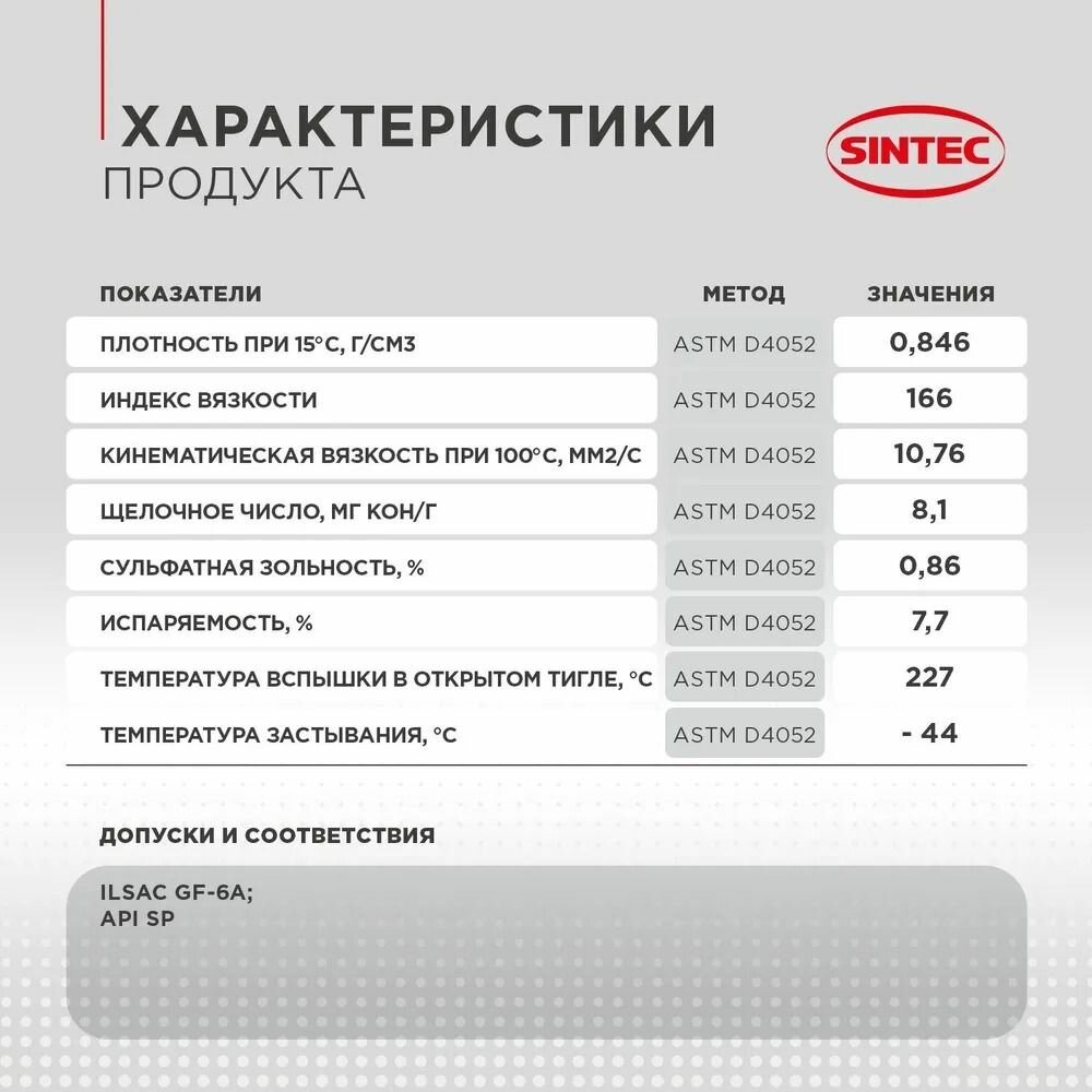 Sintec Моторное масло синтетическое Platinum SAE 5W-30 API SN, Ilsac GF-5 4 л 801973 .