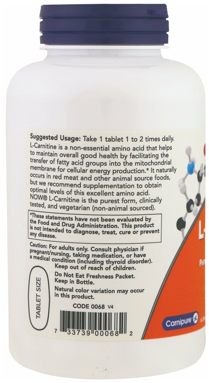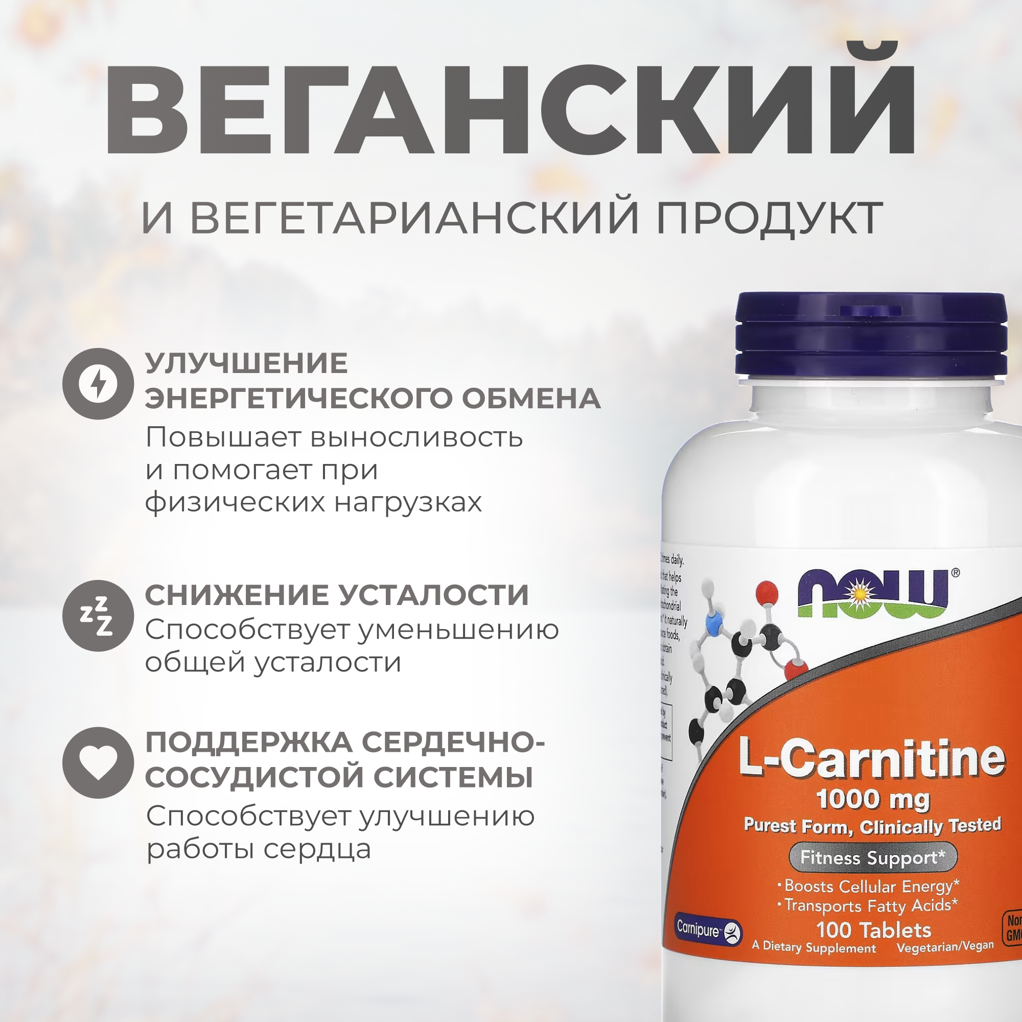 L-карнитин Нау Фудс (L-Carnitine NOW Foods), 1000 мг, 100 таблеток