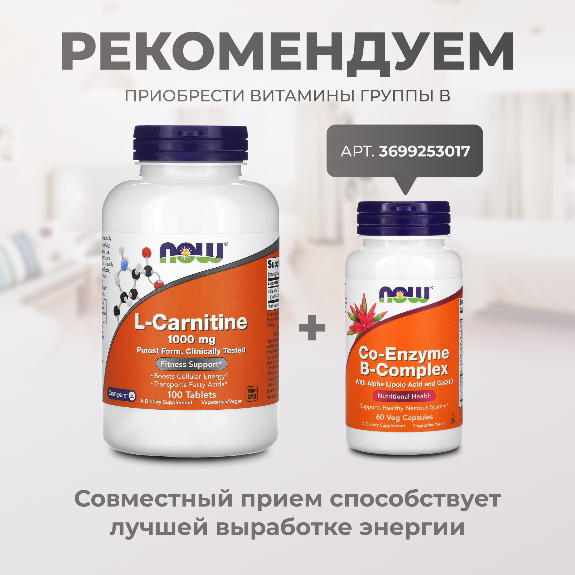 NOW Foods, L-карнитин, 1000 мг, 100 таблеток