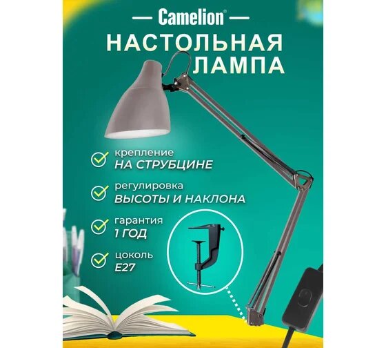 Светильник KD-335 C09 настольный с метал. струбциной 230В 40Вт E27 светло-сер. | код 13881 | Camelion (2шт.в упак.)