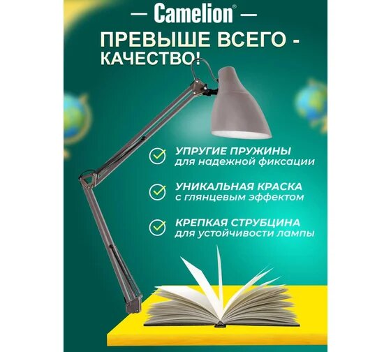 Camelion Светильник настольный CAMELION KD-335 C26 40 Вт, серый настольная лампа в Курчатов