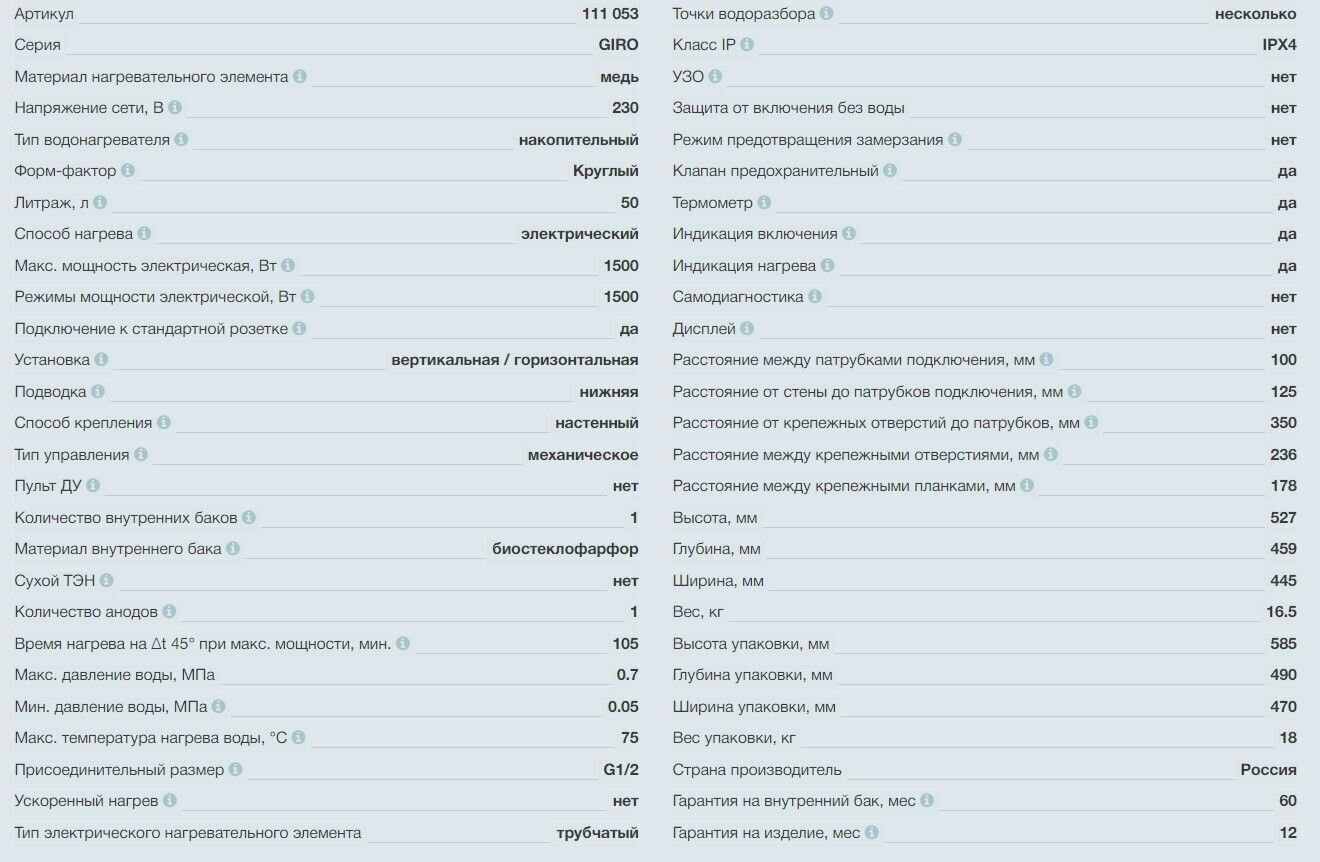 Водонагреватель электрический накопительный 50 л 1,5 кВт GIRO 50 THERMEX ЭдЭБ00638