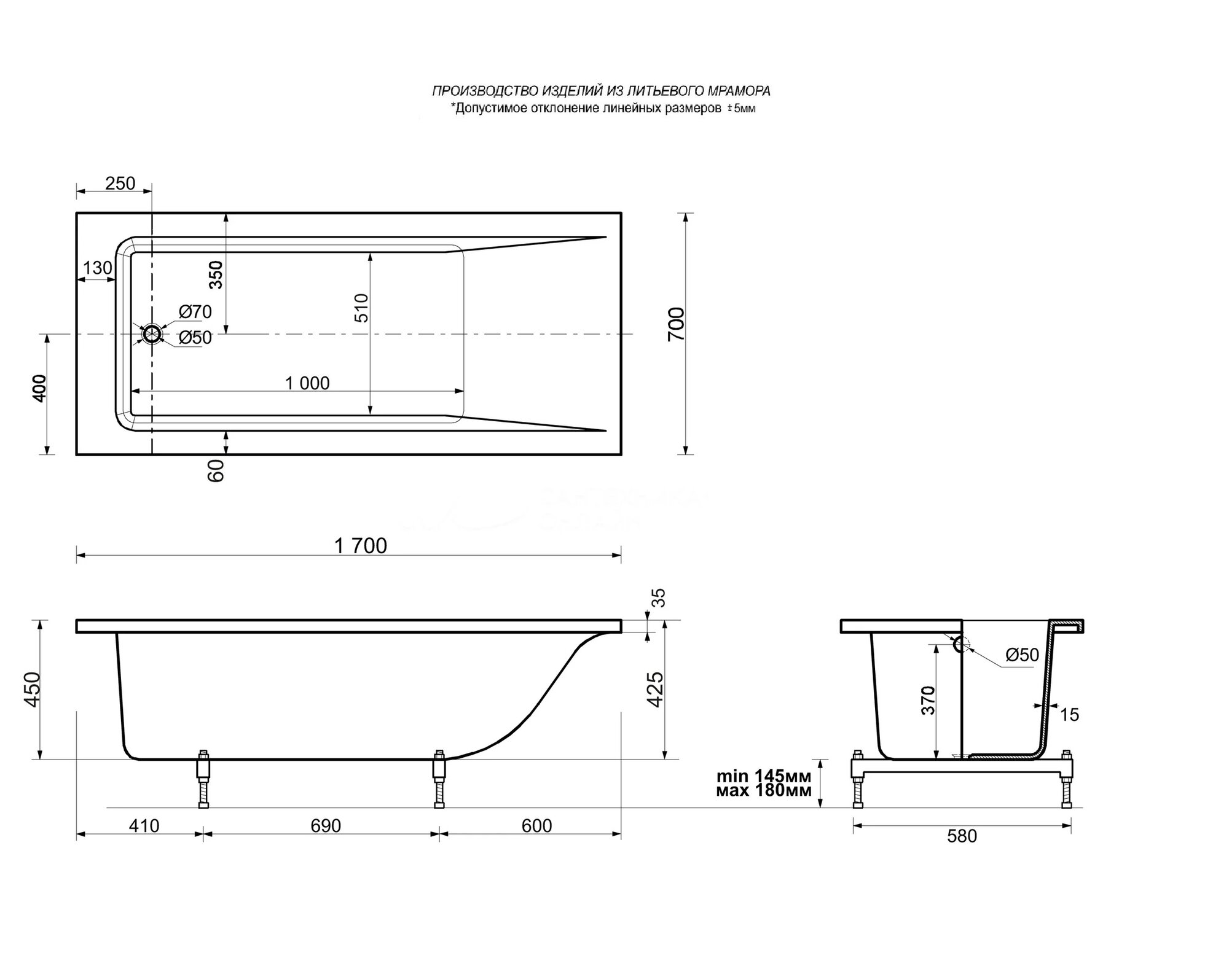 Ванна из литьевого мрамора Sergig Viven 170x70 см