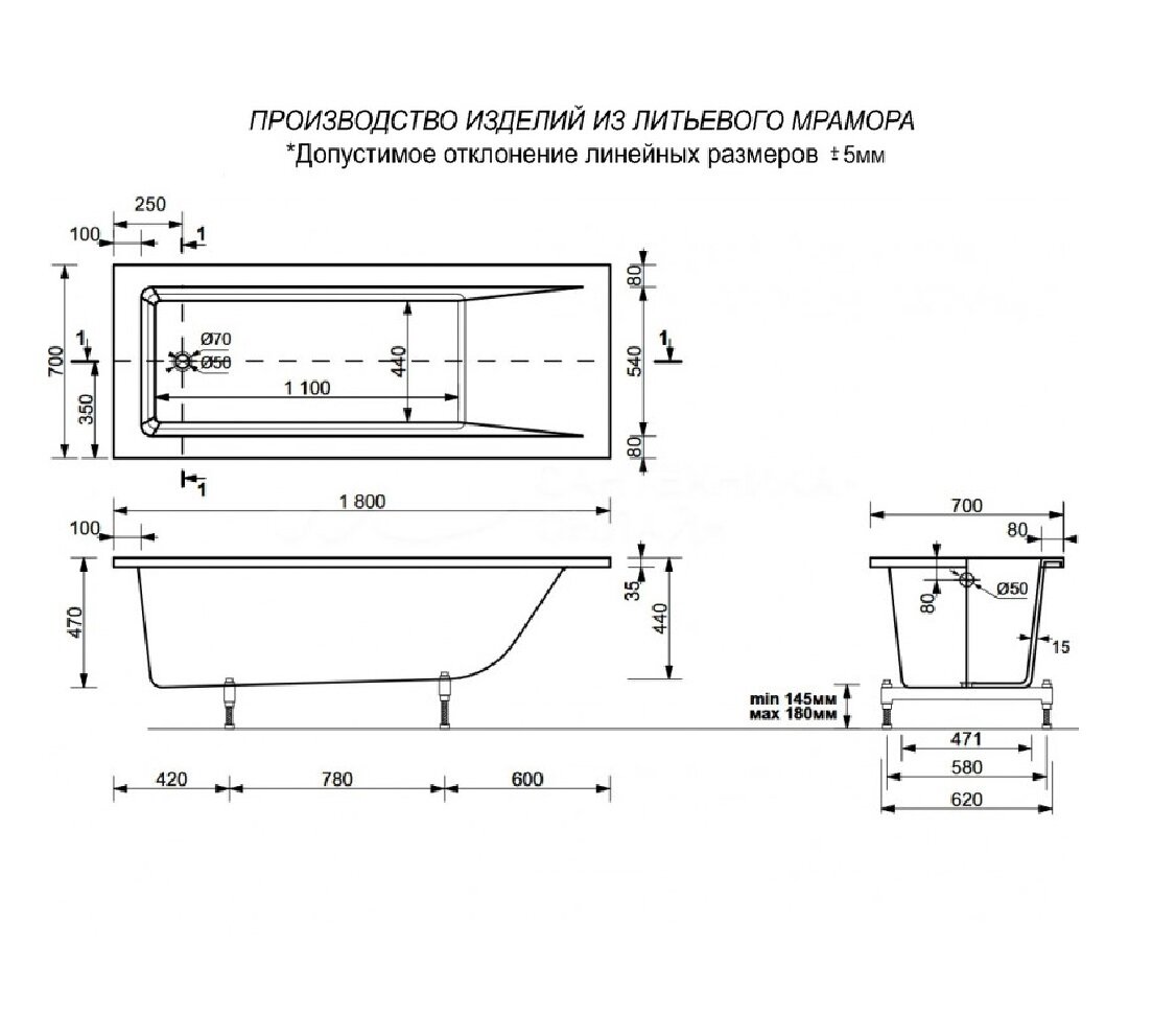 Ванна из литьевого мрамора Sergig Viven 180x70 см