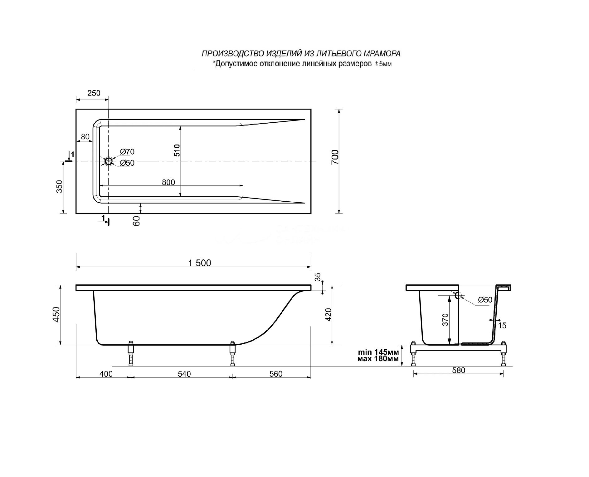 Ванна из литьевого мрамора Sergig Viven 145x70
