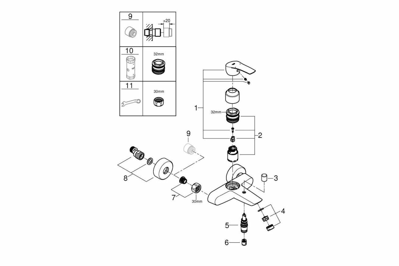 Смеситель для ванны Grohe Eurosmart, хром 33300003