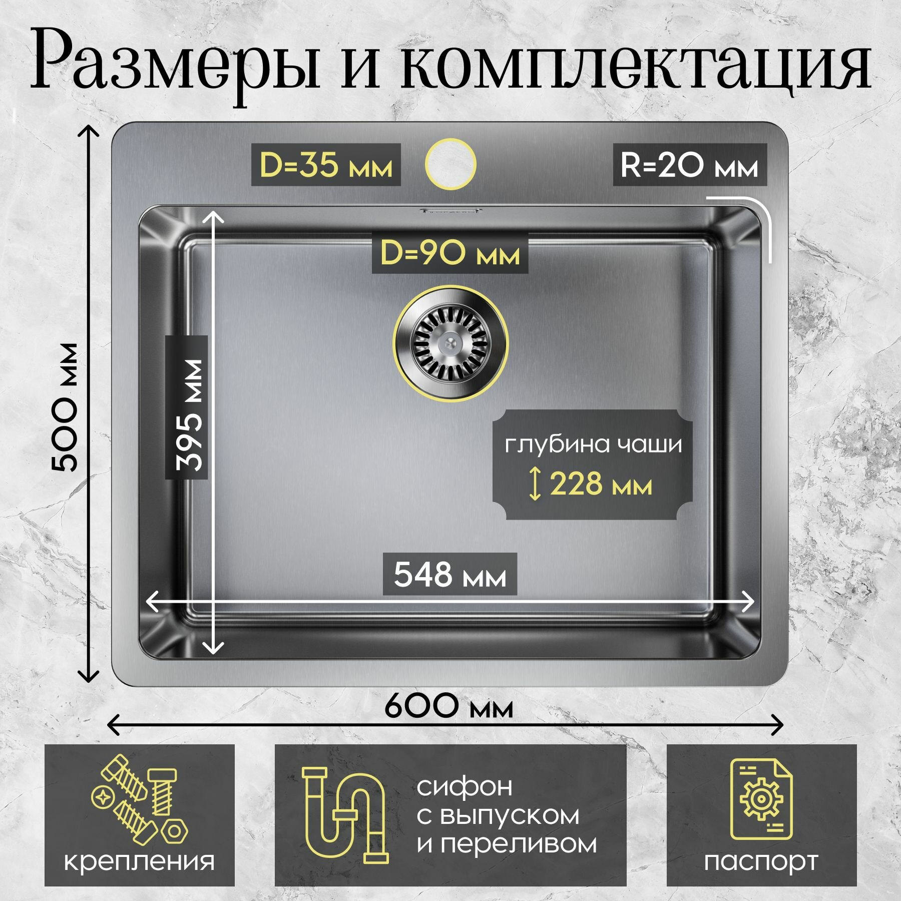 "Кухонная мойка TopZero ME600.500.GT10K, нержавеющая сталь"