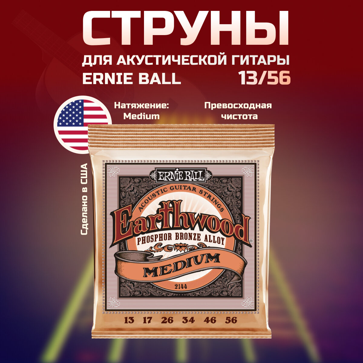 Струны для акустической гитары Ernie Ball 2144 Earthwood Medium Phosphor Bronze 13-56