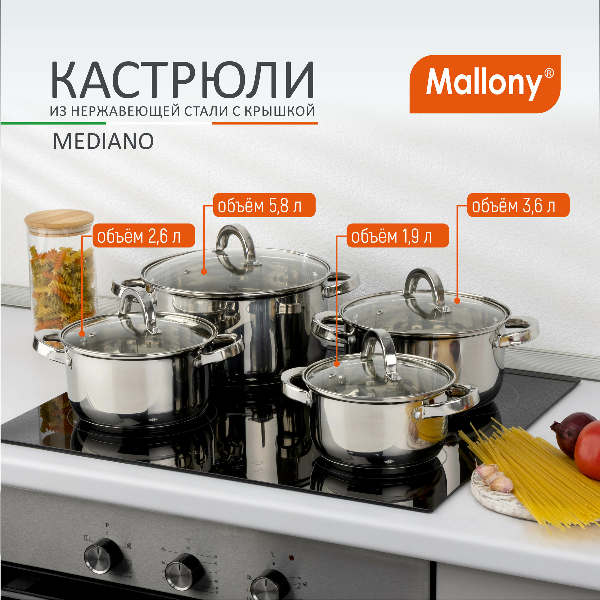 Mallony Mediano 005445, Кастрюля 5,8 л (нержавеющая сталь, стеклянная крышка)