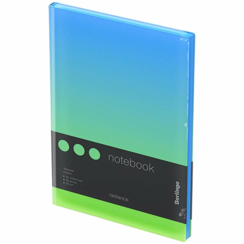 Записная книжка А5 Berlingo "Radiance", 80 листов, клетка, кожзам, черный срез, голубой/зеленый градиент (NB0_93503)