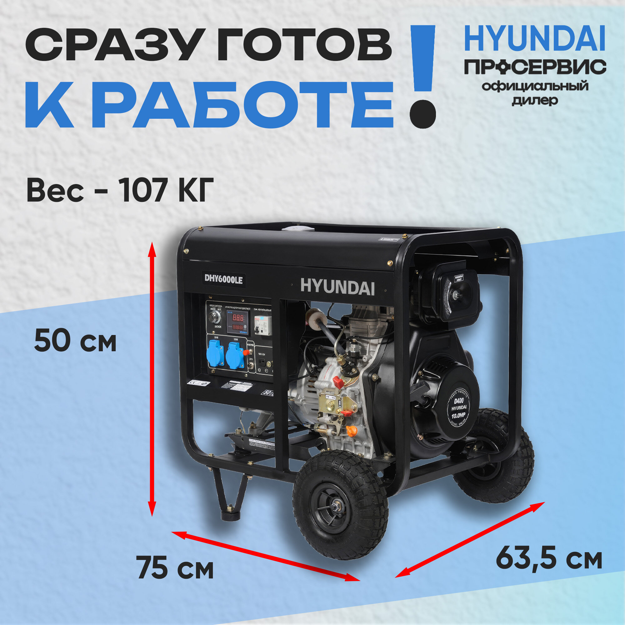 Дизельный генератор HYUNDAI DHY 6000LE, 230 В, 5.5кВт