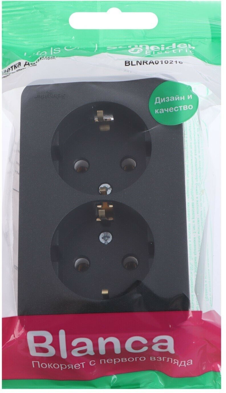 Розетка двойная Systeme (Schneider) Electric Blanca BLNRA010216, накладная, с/з, антрацит