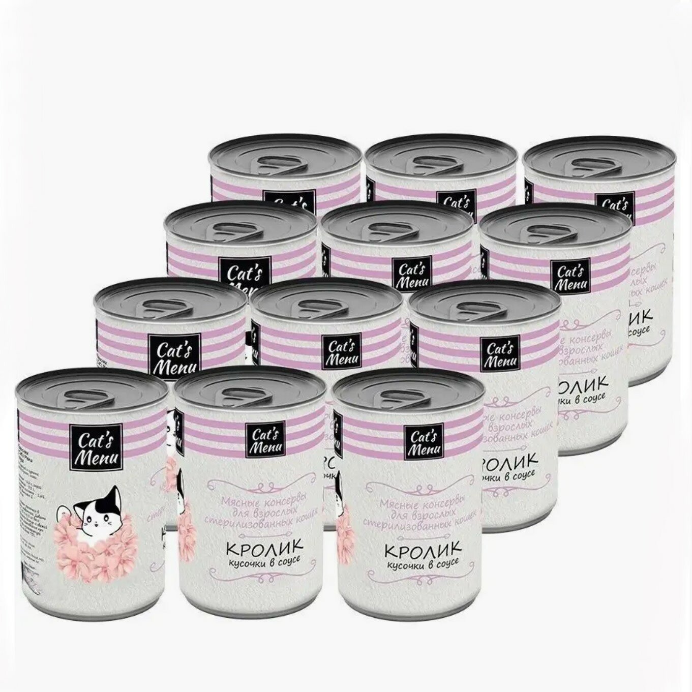 Cat`s Menu влажный корм для взрослых стерилизованных кошек с кроликом кусочки в соусе в консервах - 340 г х 12 шт