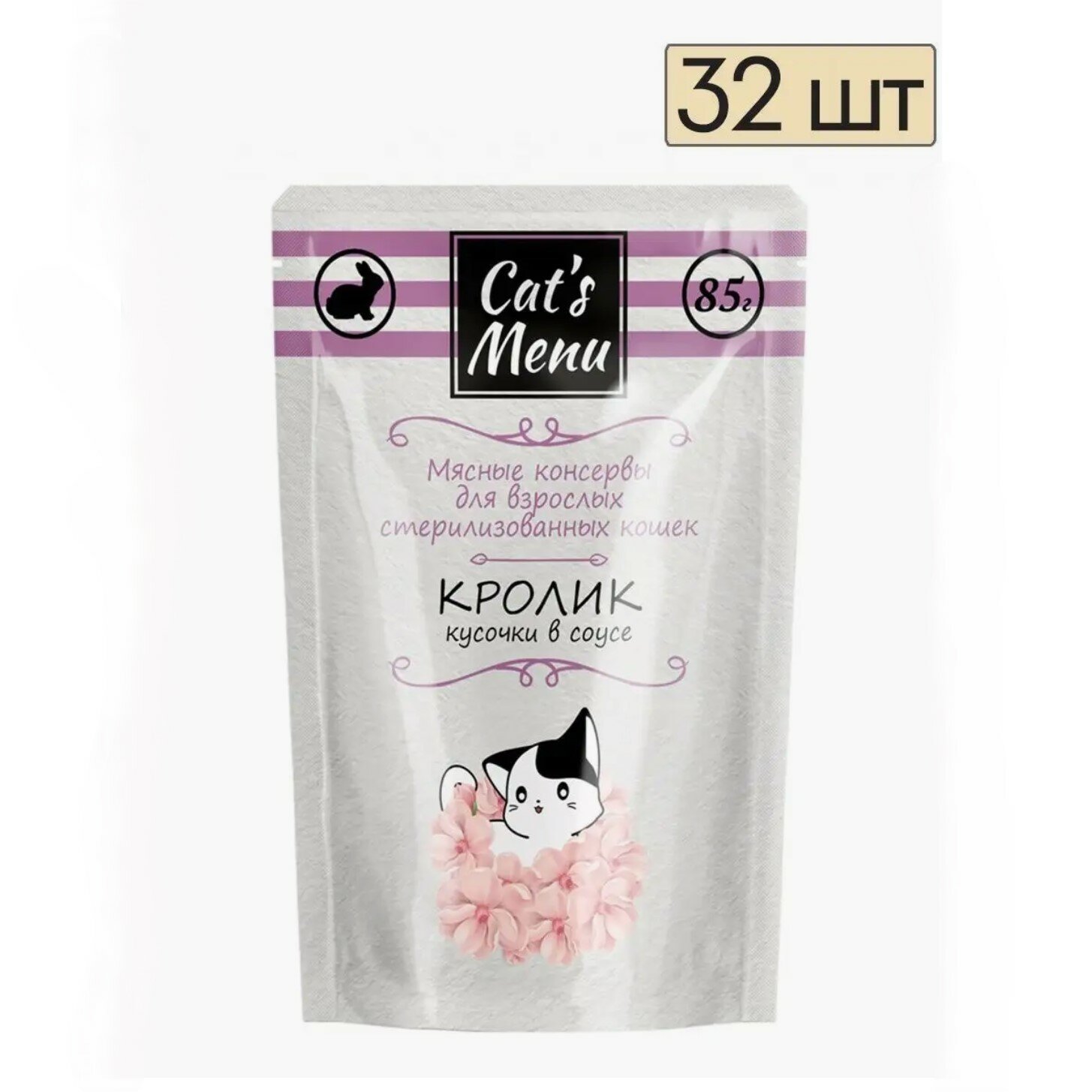 Cat's Menu Влажный корм для для стерилизованных кошек с кроликом ,кусочки в соусе , 340 г