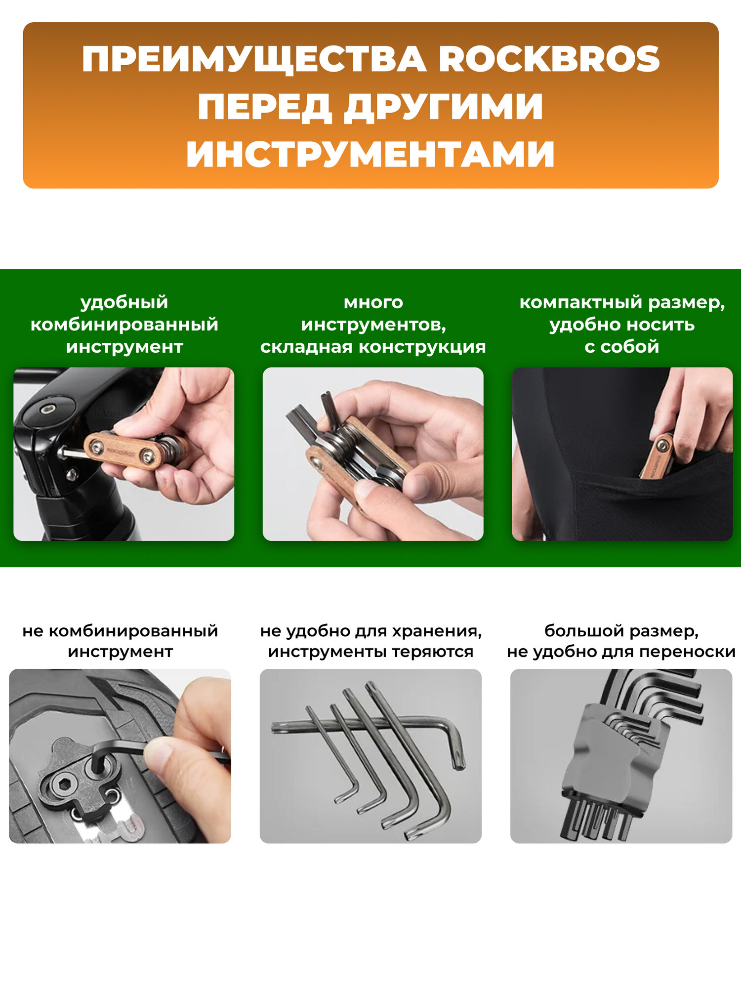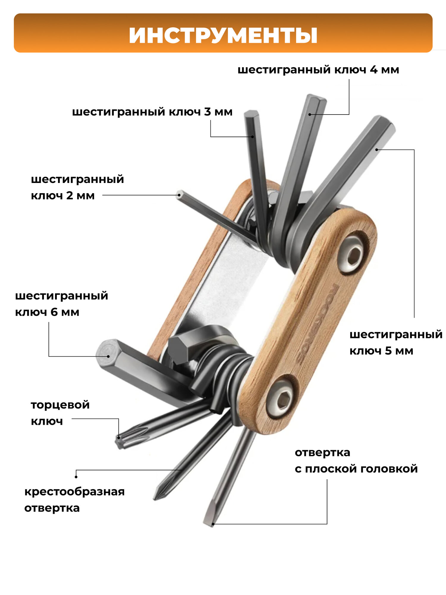 Набор инструментов для ремонта велосипеда карманный 16 в 1 ROCKBROS шестигранники, спицевой ключ, ключи велосипедные, отвертки