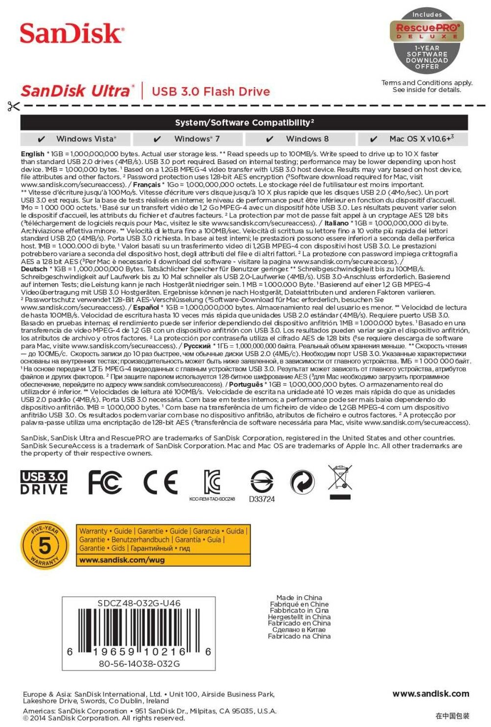 USB 32GB SanDisk CZ48 Ultra, USB 3.0
