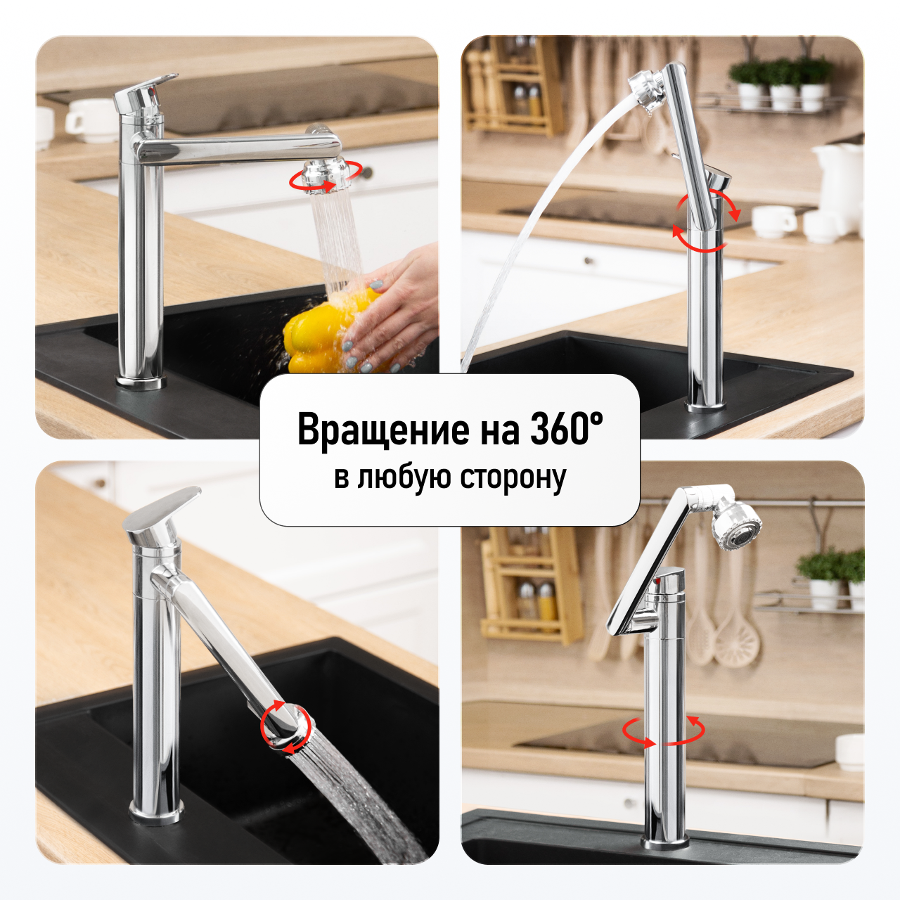 Смеситель для кухни, раковины, умывальника, ванной, мойки Gliwemix поворотный с вращением на 360 градусов и аэратором. Кран для ванны и душа. Высокий