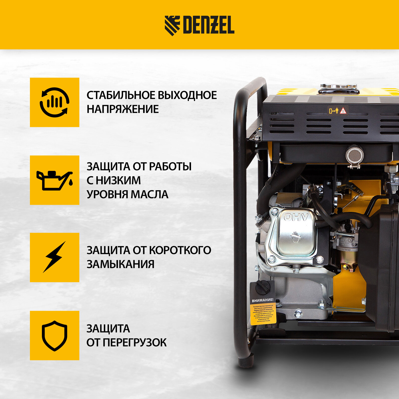 Генератор инверторный Denzel GT-2500iF, 2,5 кВт, 230 В, бак 5 л, открытый корпус 94704 94704 .