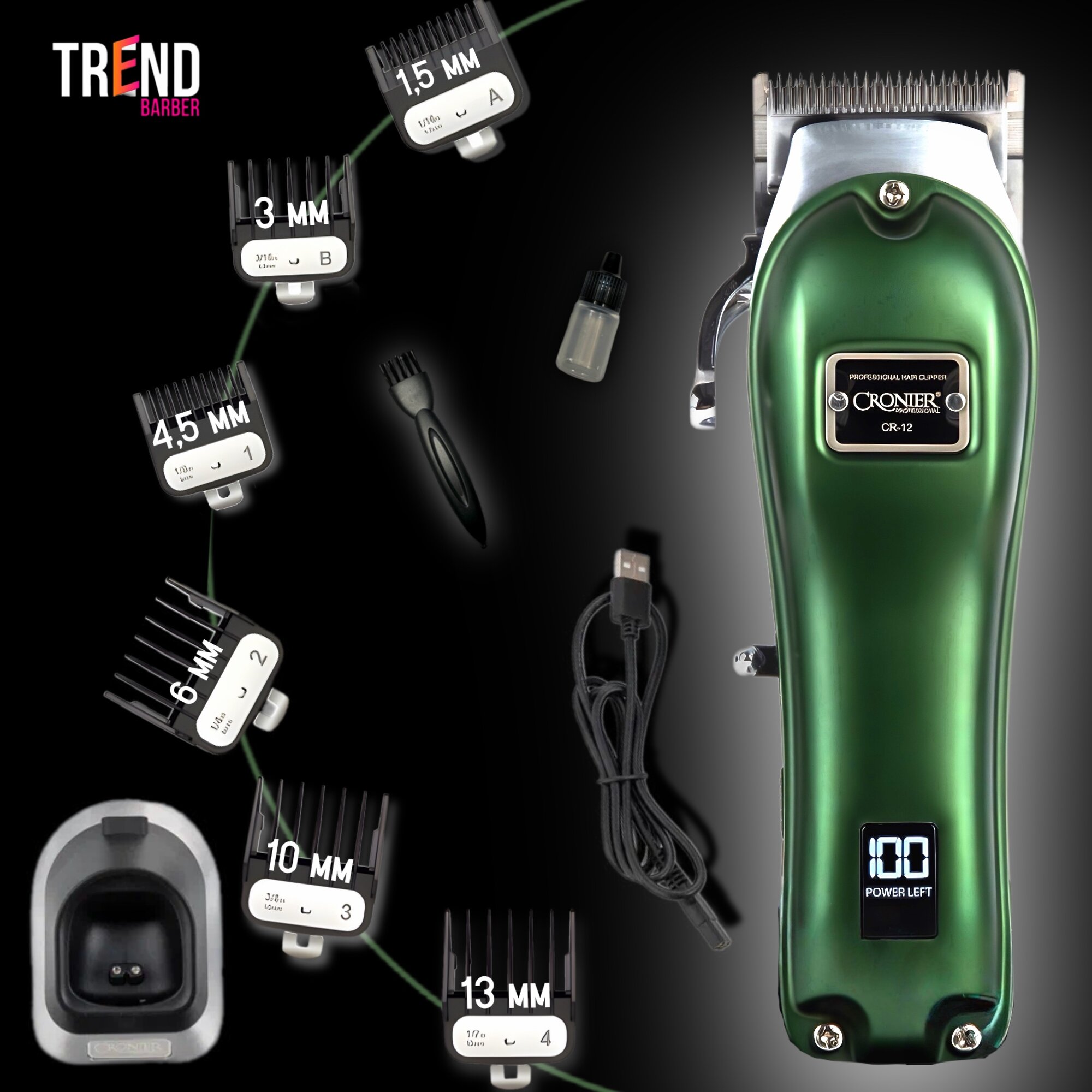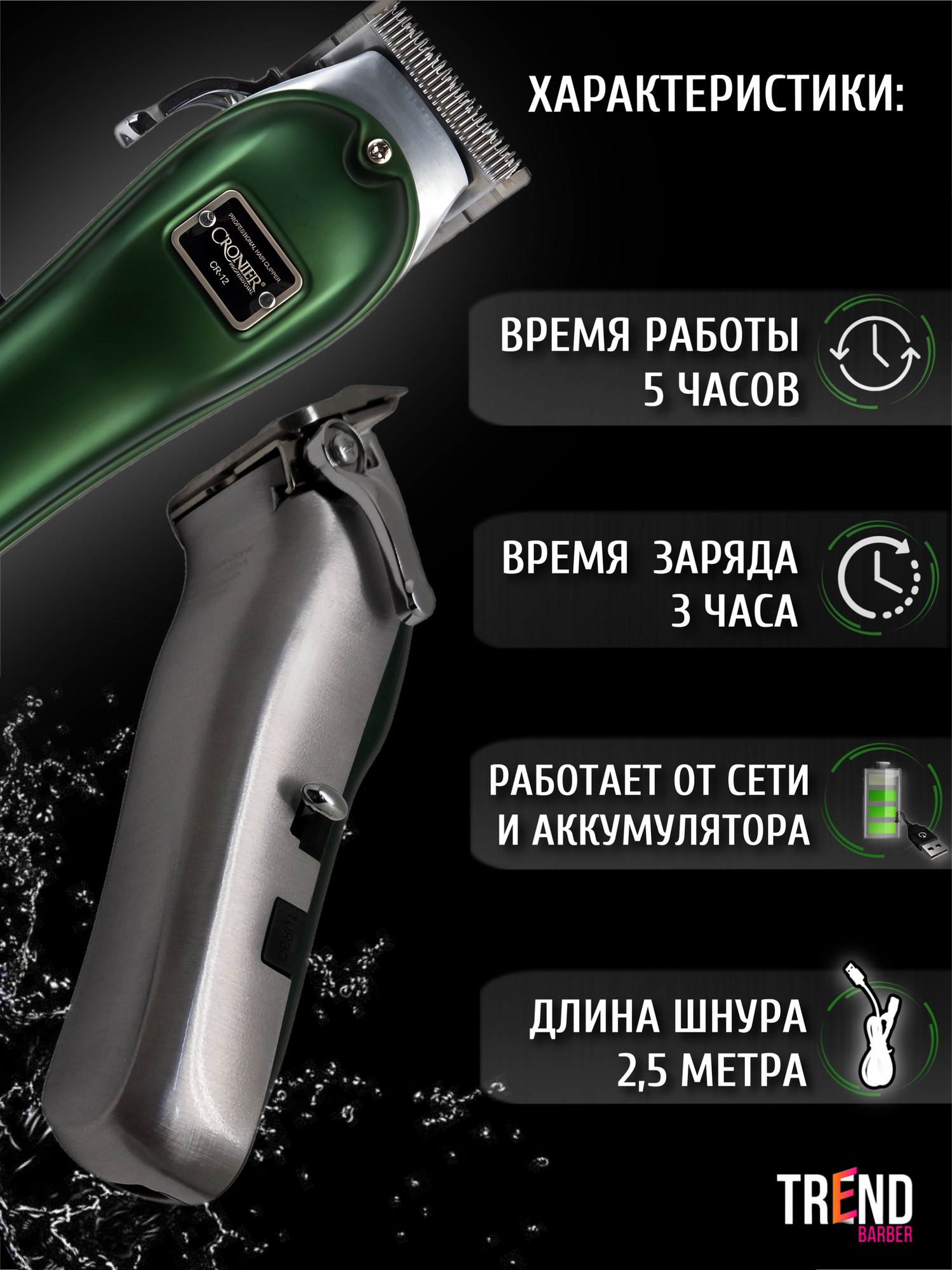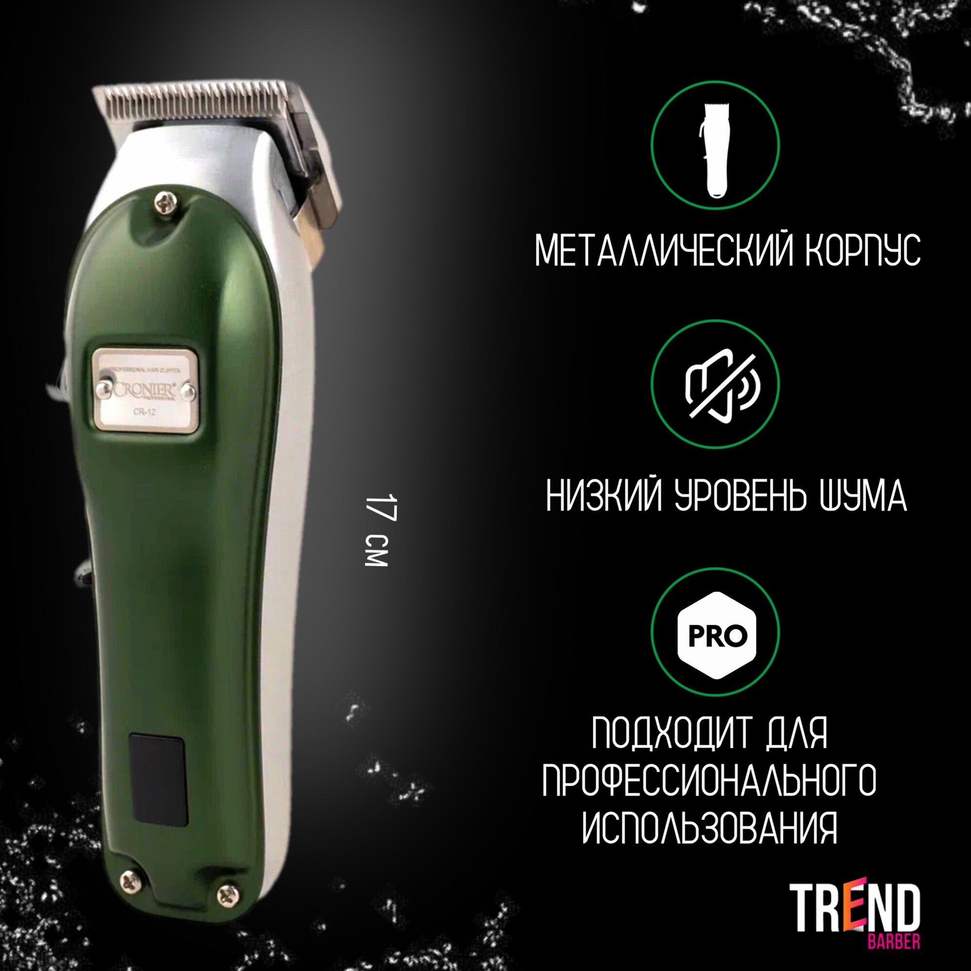 Cronier Машинка для стрижки волос Cronier CR-12, профессиональная, нержавеющая сталь, зеленая машинка для стрижки волос в Курчатов