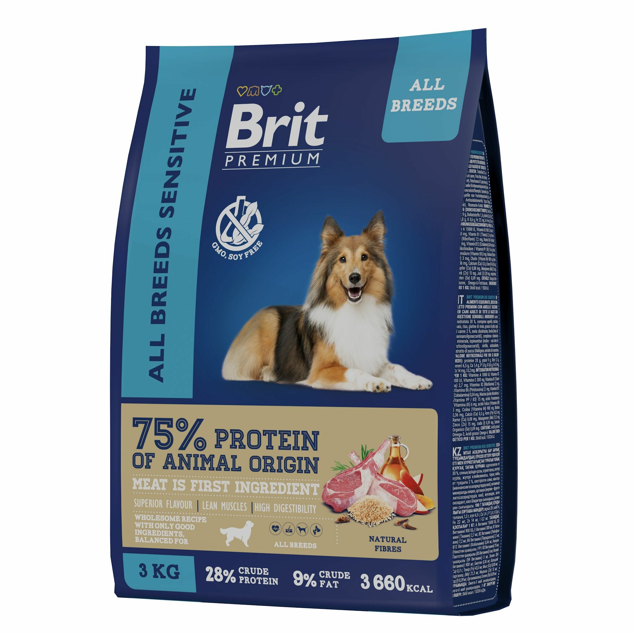 Brit Premium Dog Sensitive 3 кг сухой корм с ягнёнком и индейкой для взрослых собак всех пород с чувствительным пищеварением