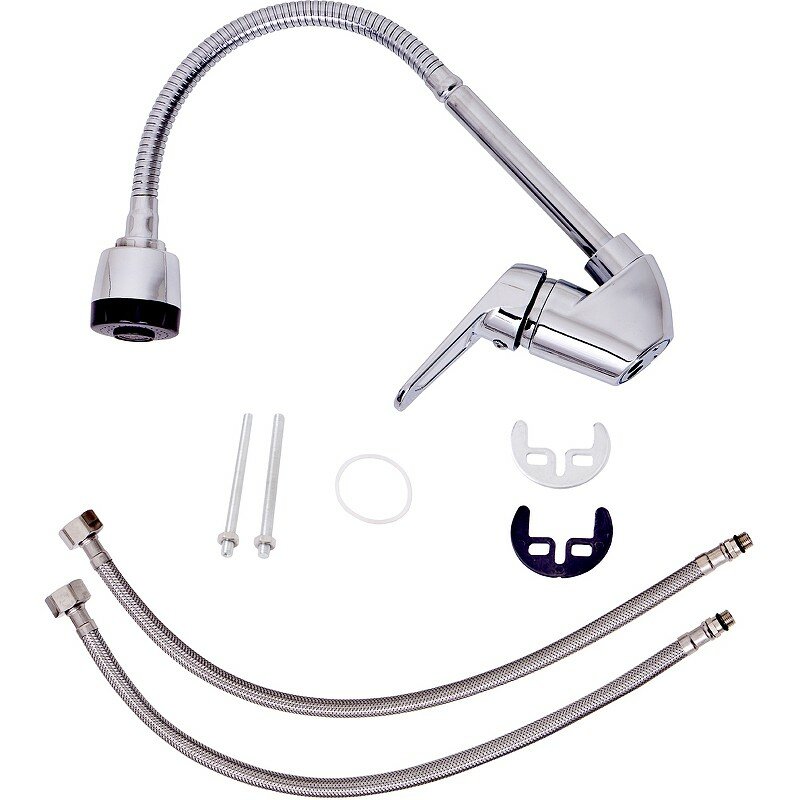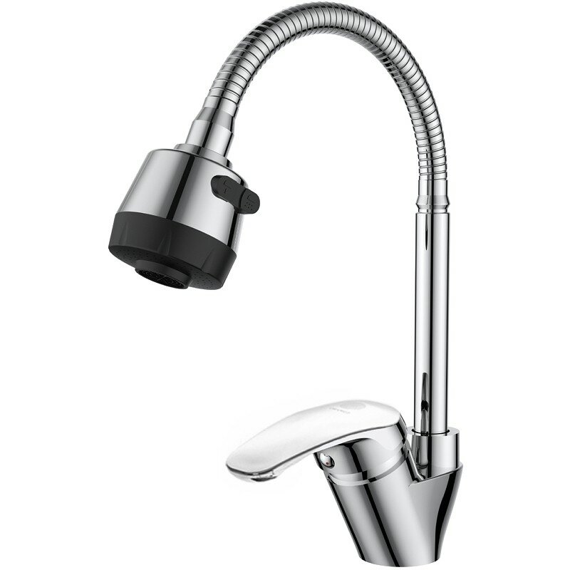 Смеситель для кухни полимерный однорычажный с поворотным гибким изливом 2 режима струи OneLife P11-004cr, хром