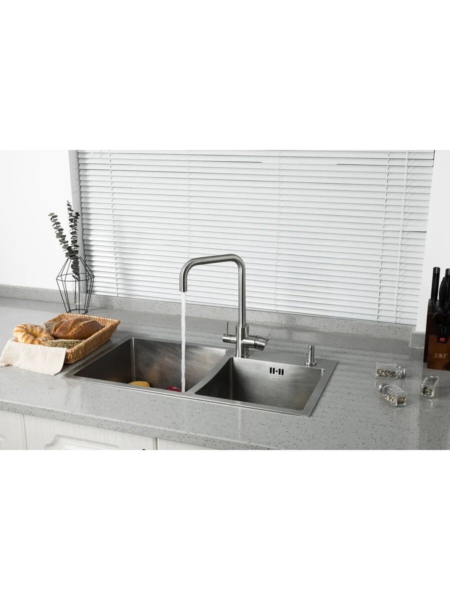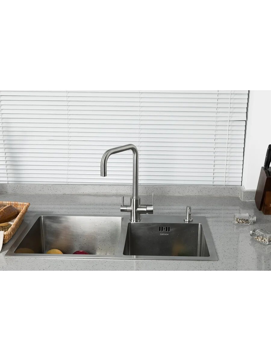 Смеситель для кухни со встроенным фильтром Frap F43801, нержавеющая сталь