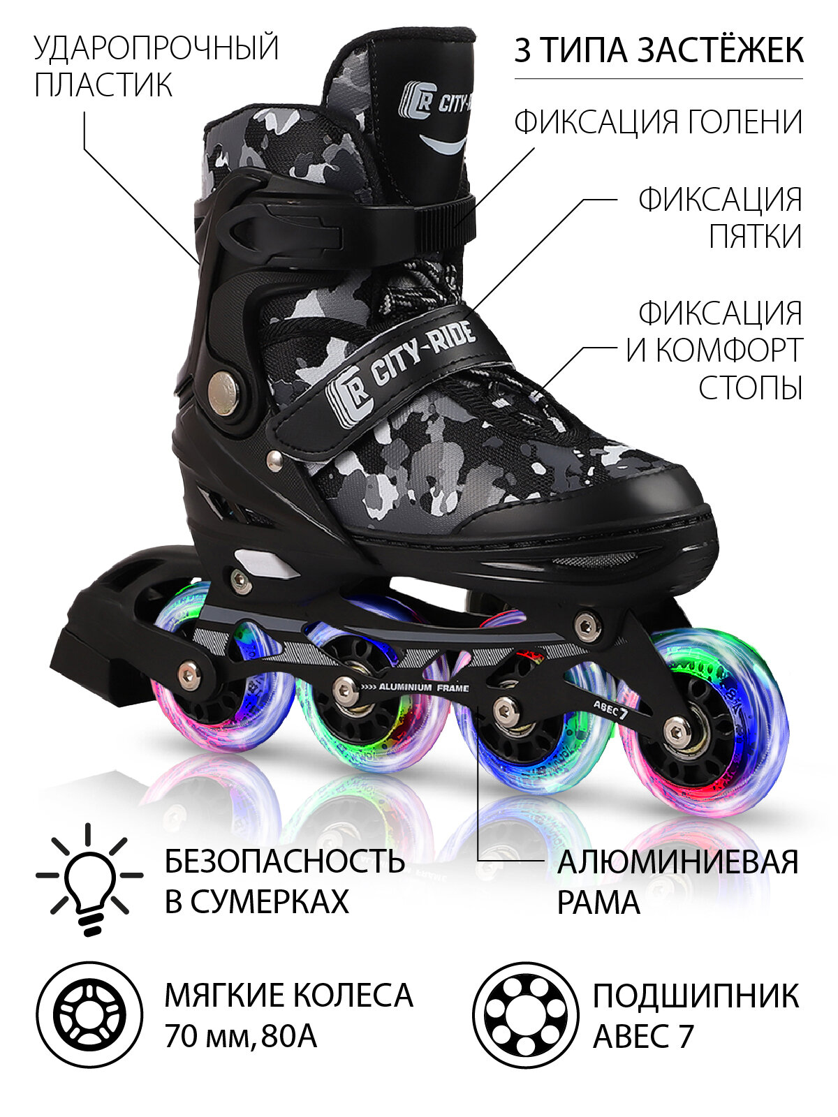 Роликовые коньки детские ТМ CITYRIDE, PU колеса, все колеса светятся, подшипники ABEC 7, размер М (34-38), раздвижные, JB0206369