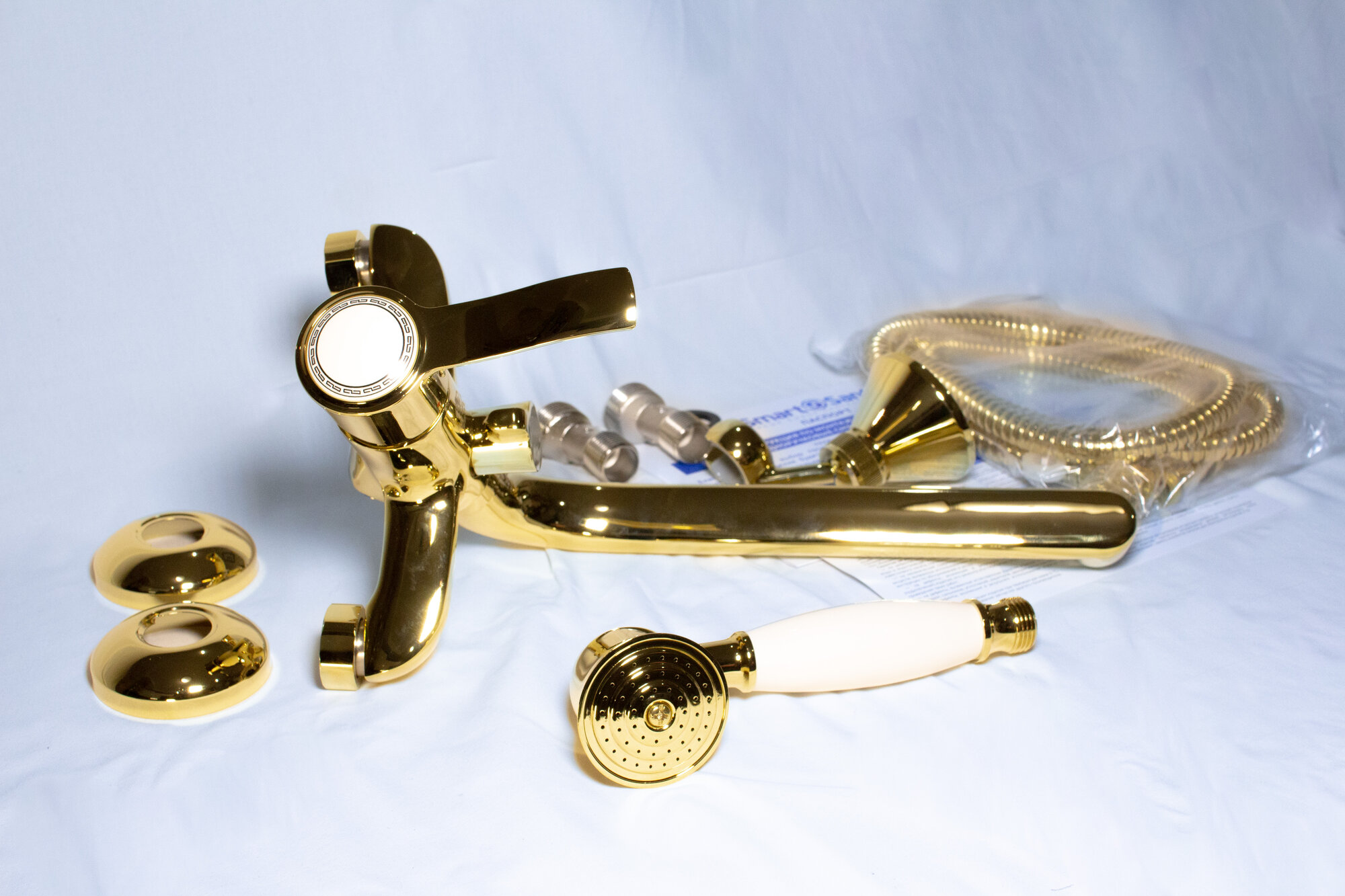 Смарт-Винтаж смеситель для ванны и душа, излив 250мм, керамический переключатель, с аксессуарами, золото (SM263512GL)