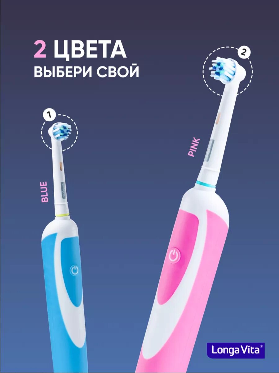 Насадки сменные для электрической зубной щётки Longa Vita, щетина средней жёсткости, розовая