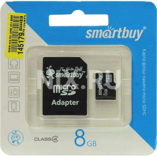 Карта памяти Smartbuy microSD, 8 Гб, SDHC, класс 4, с адаптером SD Smartbuy 1174965 .