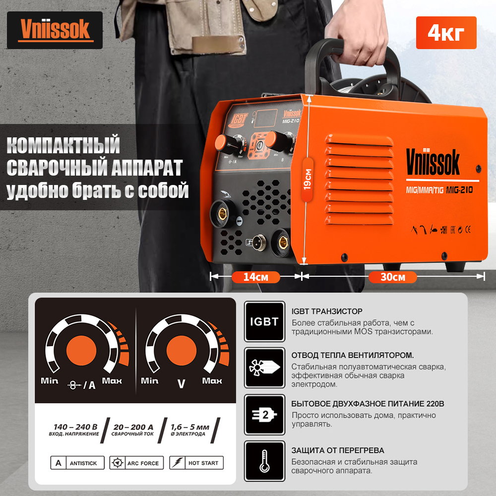 Huawei Сварочный полуавтомат с газом/без газа MIG-210 без газа 3 в 1 (MIG NO GAS/ММА/TIG) IGBT инверторы в Курчатов