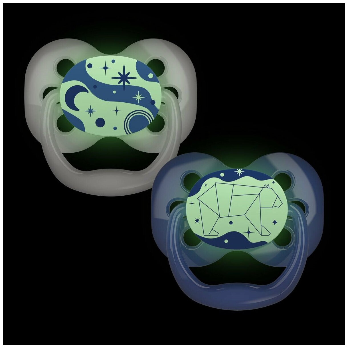 Пустышка Dr. Brown's Advantage™ ночная, 0 - 6 месяцев, с колпачком, для мальчиков, 2 шт