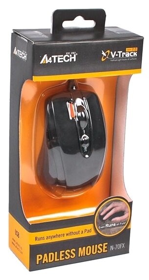 Мышь A4Tech V-Track Padless N-70FX черная, оптическая (1600dpi), USB (7 кнопок)