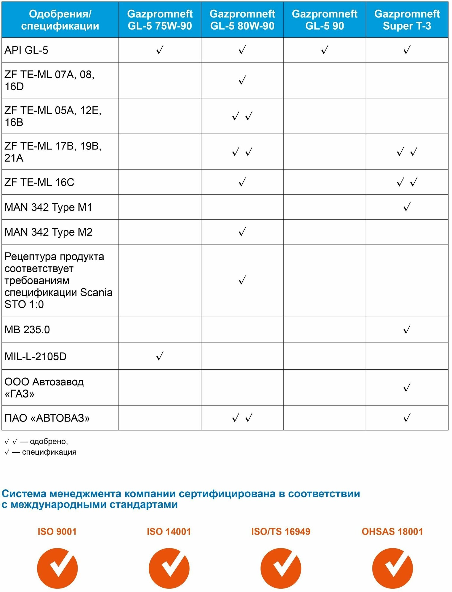 Масло Транмиссионное 1 Л, Gazpromneft Gl-5 80W-90 80W-90/ Gl-5 Mb 235.0 Man 342 Typ M2 Zf Te-Ml 16B, 17B, 19B, 21A 1 Л, G...